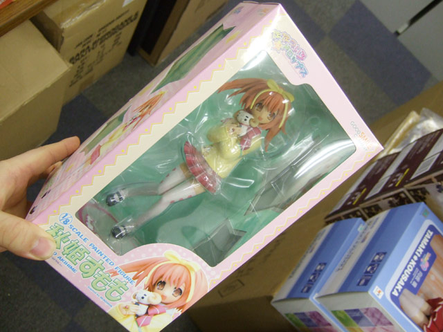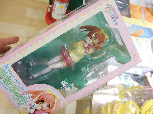 これは、ソフマップ本店などでサンプル展示もあった、エロゲ「ななついろ★ドロップス」のヒロイン「秋姫すもも」を立体化したもので、グッスマの商品説明によると「ちょっぴり不思議…、ななついろの初恋物語。 TVアニメ化も決定した「ユニゾンシフト」×「いとうのいぢ」強力タッグの人気ゲーム『ななついろ★ドロップス』よりヒロイン「秋姫すもも」を立体化。ちょっと臆病な性格だけど、羊のぬいぐるみ“ゆきちゃん”になってしまった主人公を元の姿に戻す為、「星のしずく」を集めるけなげな頑張り屋さん。ゆきちゃんを胸に抱き、優しく微笑む姿には癒される事間違いなし。危うく風に舞う短いスカート、指輪や制服のディテールにもこだわったオススメ商品です。」と紹介されています。