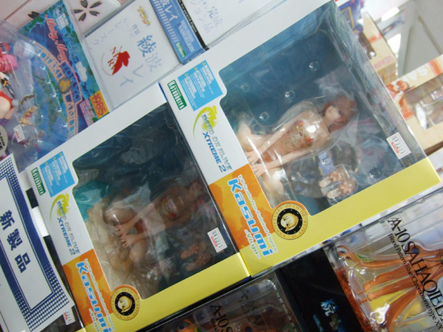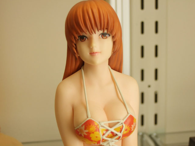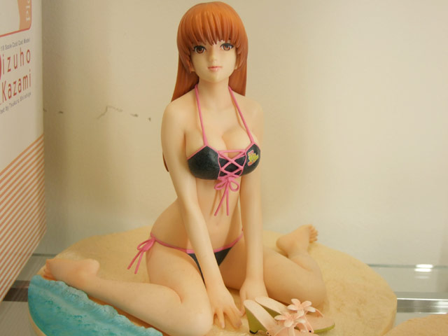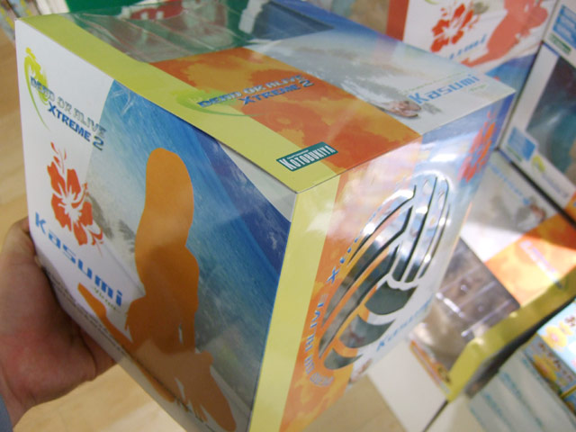 これは以前、ワンフェス2007冬で3種のサンプルを撮影させて頂き、その後、コトブキヤ秋葉原店にてサンプルレビューも撮らせて頂いたことのある、DOAシリーズのかすみを、水着姿で立体化したもので、コトブキヤの商品説明によると「3D格闘ゲーム、デッドオアアライブから人気の女性キャラクターが常夏の地で大活躍する期待の新作DEAD OR ALIVE XTREME 2から常に上位に人気のかすみが登場!ゲームのイメージそのままで且つ見所満載な造りこんであるボディが魅力です。」と紹介されています。