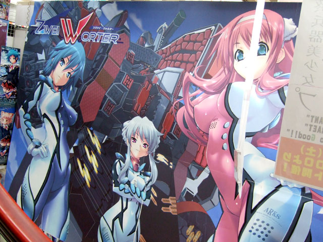 ゲームシティのB1エロゲコーナーに向かう階段では、4月27日発売予定のclockupのエロゲ「ツヴァイウォルター」(AA)の告知展開が開始しています。ゲームシティではこんなのとか、こんなのとか、比較的大きなPOPをよく見かけますが、今回のPOPは、ゲームシティ以外も含め、アキバの「店内POP」としては、自分が見かけた中では間違いなく過去最大サイズw