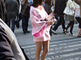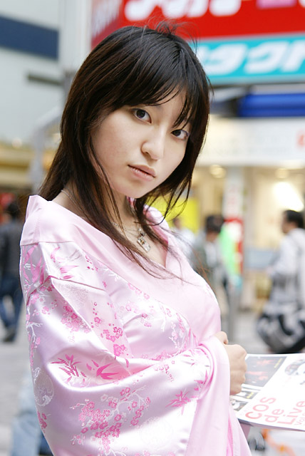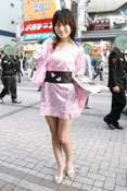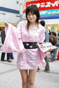 4月15日、秋葉原駅前で、ちょうどこんな感じなミニスカ着物の女性が、チラシを配布をされていました。