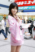 ミニスカ着物を着ていた女性は祐城真さんで、今回はおたく評論家の宅八郎氏がプロデュースしている「うにプロジェクト」主催で、4月28日に神田Zippal Hallで開催されるコスプレライブイベント「COS de Live(コスドライブ)vol.9」の告知でアキバにこられたみたいです。