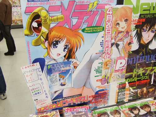 「アニメディア 2007年 5月号」(AA)が4月10日に発売されています。ゲーマーズ本店では、発売された10日から、店頭平段の上に「魔法少女リリカルなのはStrikerS」の「なのは」のパンツ見えそうで見えない表紙を拡大して掲示していましたが、そこに新たに、全プレテレカの告知ページを用いたPOPが追加されてたのに気がつきました。そっちのPOPだとパンツ解禁でしたw
