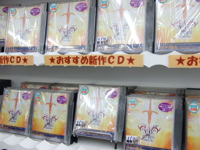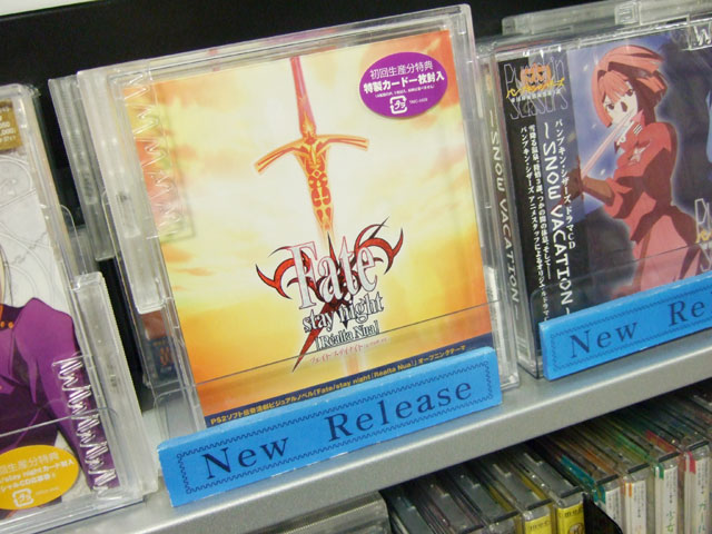 4月17日に、PS2用ソフト「フェイト/ステイナイト[レアルタ・ヌア]」(AA)のフライング販売もあったらしいアキバでは、同じ17日に「フェイト/ステイナイト[レアルタ・ヌア]」(AA)のOP、ED曲を収録したCD「黄金の輝き」(AA)がゲームシティにて発売されていました。