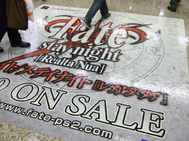 秋葉原駅前の床にも、「フェイト/ステイナイト[レアルタ・ヌア]」(AA)のタイトルロゴが付けられていて、いよいよ発売が迫ってきたという感じでした。