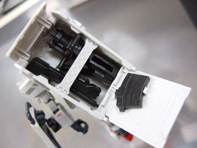 胸部外装脱着可能、背部ウエポン・コンテナ開閉可能。