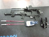 アンテナ硬質樹脂パーツ、シールド×1、100mmマシンガン×1、180mmキャノン×1、バズーカ×1、ビーム・サーベル×2付属。