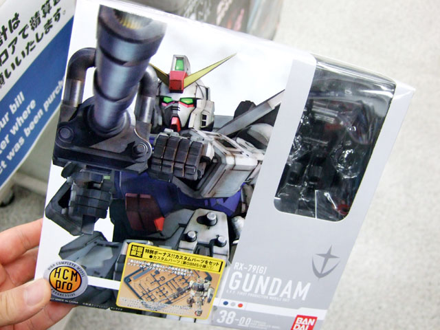 バンダイ「HCM-Pro38 陸戦型ガンダム」(AA)のサンプル展示が、キャラシティ2Fにて開始しています。これは、「機動戦士ガンダム 第08MS小隊」の主人公機でもある「陸戦型ガンダム」を、ハイコンプロとして立体化したもの。可動範囲はそれなりって感じですが、膝立ちポーズはもちろん可能で、背部ウエポン・コンテナにきちんと180mmキャノンが収納できるのがすごいw