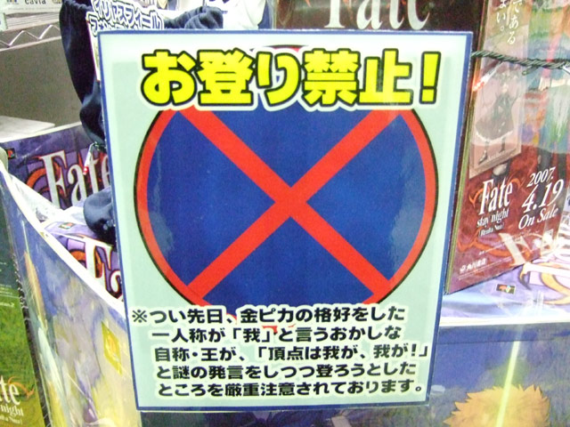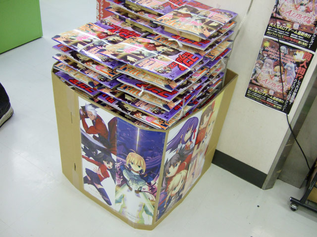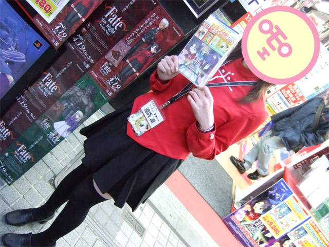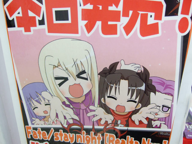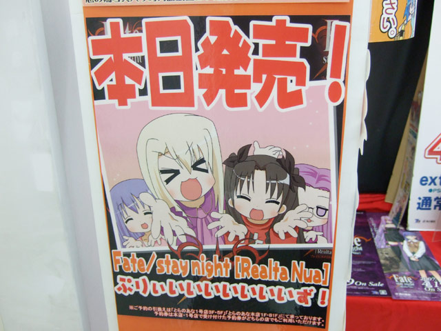 とらのあな本店では、POPに「らき☆すた」のOP風に描かれたイラストPOPを掲示していて、「Fate/stay night [Realta nua] ぷりぃいいいいいいいず!」とされていました。