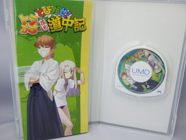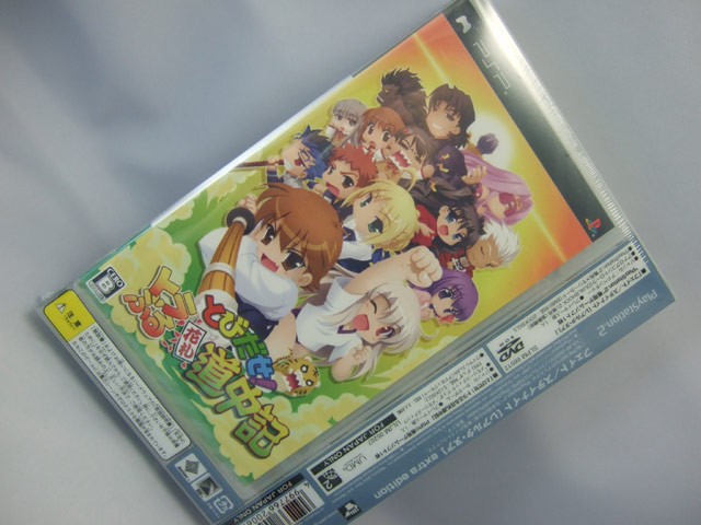 本編ディスクのパッケとその中身と、Fate/hollow ataraxiaに収録されていた、「トラぶる花札道中記」に追加要素をつけた移植版「とびだせ!トラぶる花札道中記」(アキバでのパッケサンプル展示)のパッケとその中身。