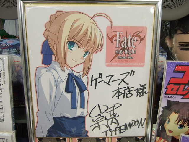 ゲーマーズ本店では、Fate/stay nightのキャラクターデザイン・原画担当の武内崇氏(竹箒)の直筆サイン色紙が。