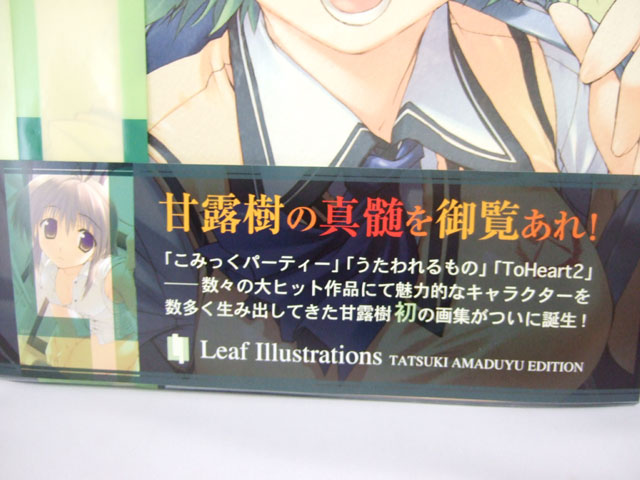 「甘露樹の真髄をご覧あれ!」と書かれたオビによると『「こみっくパーティー」「うたわれるもの」「ToHeart2」−数々の大ヒット作品にて魅力的なキャラクターを数多く生み出してきた甘露樹初の画集がついに誕生!』と紹介され、裏のオビでは、みつみ美里の「甘露のくせに私より先に画集なんて(;`□´) 上手すぎてムカツキます♪」とのコメントがw