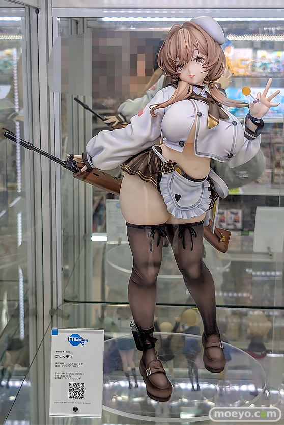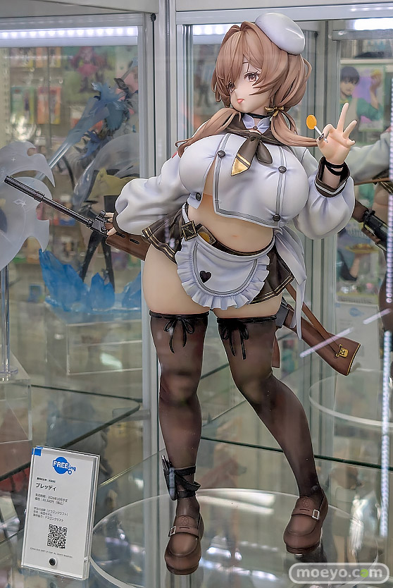 フリーイングの新作美少女フィギュア「勝利の女神:NIKKE ブレッディ」の彩色サンプルが、あみあみ 秋葉原ラジオ会館店で展示!『存在感あふれるプロポーションを、設定や公式イラストをもとに丁寧な造形で立体化しました。軽やかに腰をひねったポージングや、いたずらっぽくキャンディーを手にした仕草など、キャラクターの魅力をそのまま再現。』という、1/4スケールの大きさで立体化したもので、原型制作は宇治川法幹(ドラゴンクラフト)さん。彩色は松田モデルさん。制作協力はドラゴンクラフトさん。その展示の様子を画像レビューとしてお伝えします!