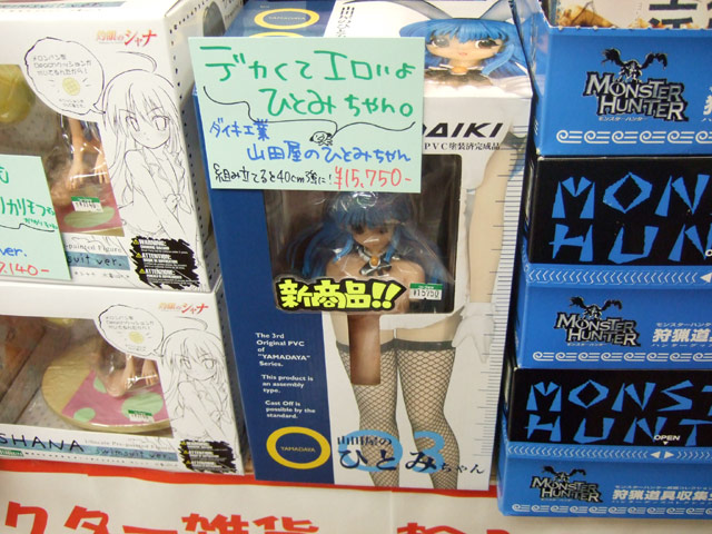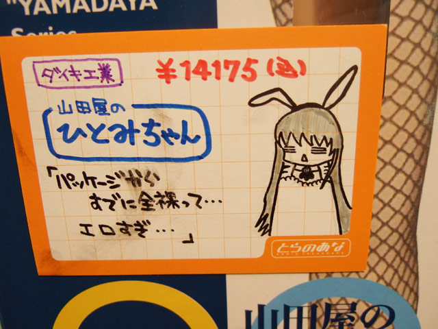 4月21日、ダイキ工業「山田屋のひとみちゃん」(AM)が発売されました。これは、必然的にローアングルで見える位置にサンプル展示もあった、山田良成氏(山田屋)原型のオリジナルキャラのガレキを、PVCフィギュアにしたもの。パッケには分割梱包され、エプロンが外された状態ではいっているのためか、とら本店のPOPでは「パッケージからすでに全裸って・・・エロすぎ・・・」