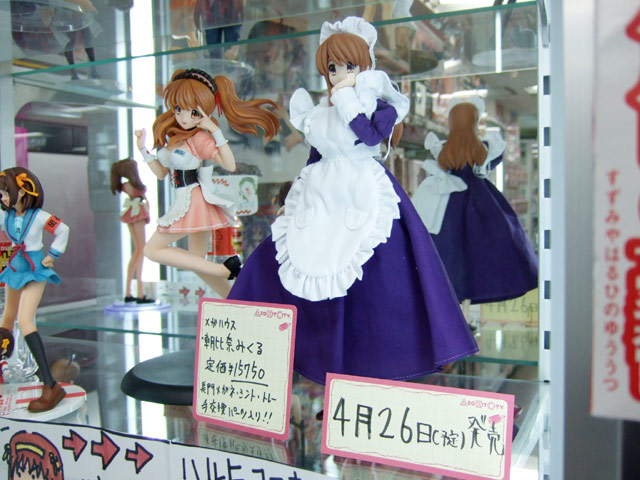 メガハウス「アクションフィギュアコレクション+ 涼宮ハルヒの憂鬱 朝比奈みくる(メイドVer.)」(AA)のサンプル展示がキャラシティにて開始しています。これは「涼宮ハルヒの憂鬱」の「朝比奈みくる」を、「キャラクターソング Vol.3」(AA)のジャケットでも着ている、劇中で着ていたメイド服姿でアクションフィギュアにしたものです。何気にみくるのメイドものの立体化は(多分)初めてw