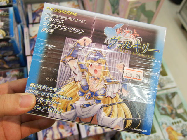 これは、ワンフェス2007冬でもサンプル展示にあった、エロゲ「戦乙女ヴァルキリー」のヴァルキリーを立体化したもので、ギガパルスの商品説明によると「劇中のイメージを彷彿させるシチュエーション、捉えられた“ヴァルキリー”を○×▲□◆◎するのは、あ・な・た!です!!!!!あなた自身の五感で、ぜひ堪能してください!!」と紹介されています。