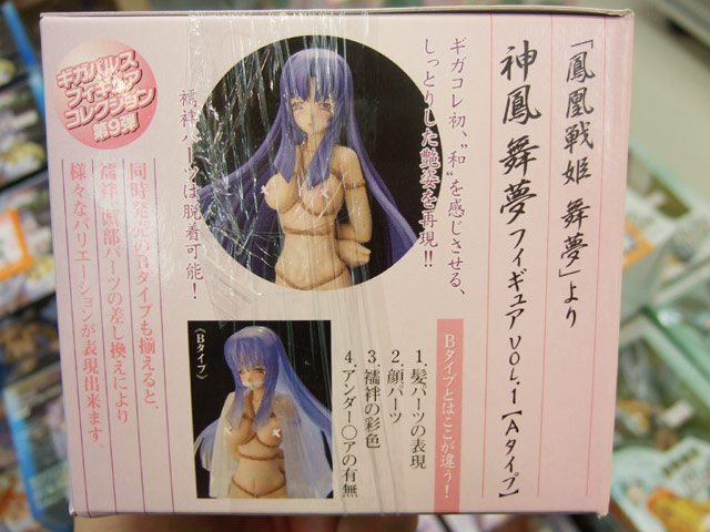 こちらもやはりワンフェス2007冬でサンプル展示にあった、エロゲ「鳳凰戦姫」の舞夢を立体化したもので、ギガパルスの商品説明によると「ギガコレ初!!”和”を感じさせる、しっとりした艶姿を再現!Aタイプ、Bタイプそれそれ揃えると、様々なバリエーションが表現出来る!」と紹介されています。