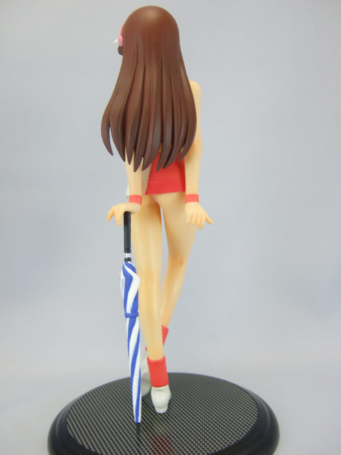 これは、以前T2サンプルレビューを撮影させて頂いたこともある、アニメ「新世紀GPXサイバーフォーミュラ」のヒロイン「菅生あすか」をレースクイーン姿で立体化したもので、ウェーブの商品説明によると「1990年代のサンライズ作品を代表するヒロインの魅力を、 あますことなく再現しフィギュア化! 今なお根強い人気の「新世紀GPXサイバーフォーミュラ」よりヒロインの『菅生あすか』がトレジャーフィギュアコレクション・シリーズで登場。 原型製作には、自身も熱狂的なファンという小川陽三氏を迎え、キャラクターデザイナー吉松孝博氏の描く、あすかを忠実に致しました。 頭部前髪パーツは、バイザーをかぶった状態とバンドのみの状態を付け替えで選べるようになっております。パラソル・パーツ、専用ベース付属。」と紹介されています。