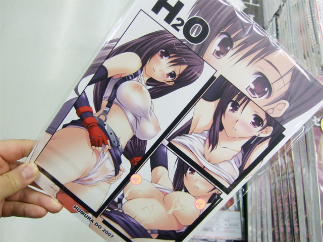 4月22日に開催されたサンクリ35の新刊が、アキバでは入荷開始していて、水原優氏の同人誌「H2O」も入荷していました。これは、FF7のティファが自ら脚を広げるのを強要されたり、いろんな角度からさされちゃったりする内容で、メロンブックスの特集ページによると「ティファむにゅむにゅおっぱいエロ本!」とのことです。他、グレンラガンのヨーコの同人誌等もありました。