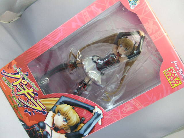 これは、キャラシティでサンプル展示もあった、2006年10月に発売された、「ゆうま」(AA)(参考サンプル)同様、アニメ「錬金3級まじかる?ぽか〜ん」の、典型的なツンデレでヴァンパイア(CV:平野綾さん)という「パキラ」を立体化したもので、第1弾「あまえないでよっ!! 南部千歳」(AA)(参考レビュー)、第2弾「こどものじかん 九重りん」(参考通常版レビュー/限定版レビュー)に続く、「新素材による柔らか成形パーツが可能にした着衣交換システム」という、POLOシステム搭載第3弾となるもの。