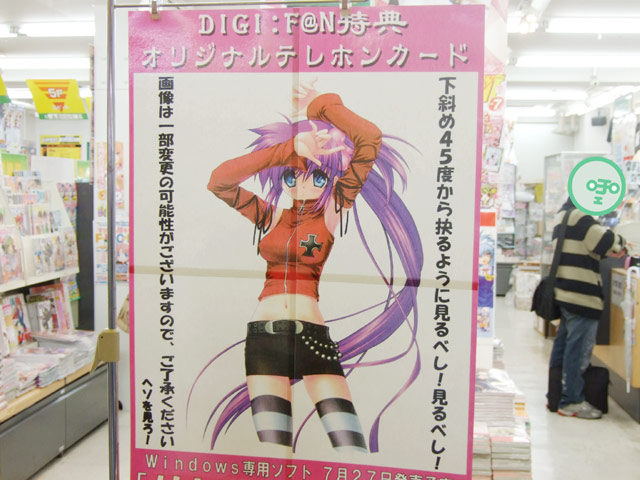 ゲーマーズ本店では、Key「リトルバスターズ」(AA)のDIGI:F@N デジファン特典のテレカイラストを大きく掲示していて「下斜め45度から抉るように見るべし!見るべし!」としていました。