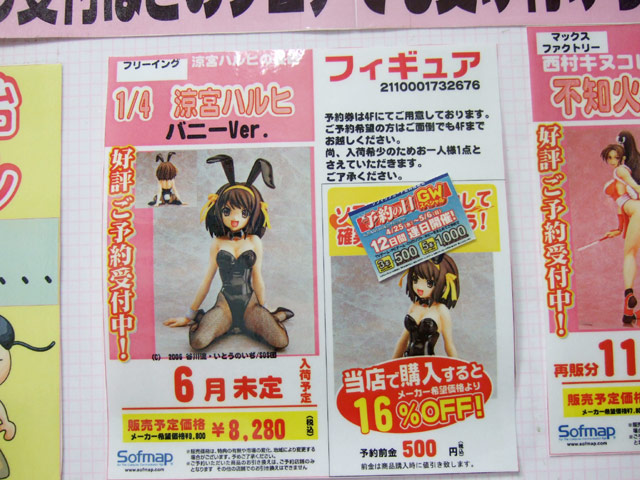 ソフマップ本店では、フリーイング「涼宮ハルヒの憂鬱 涼宮ハルヒ バニーVer.」(AA)の予約受付が開始していました。