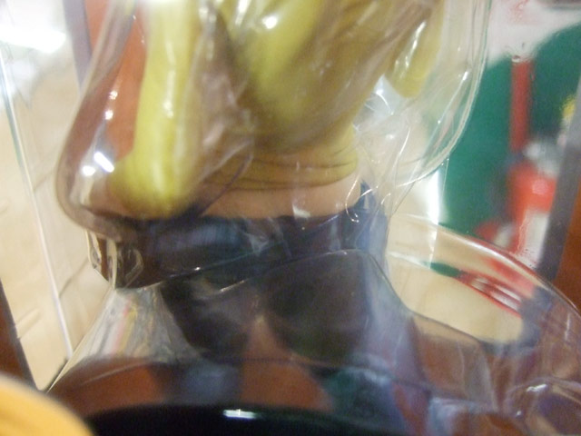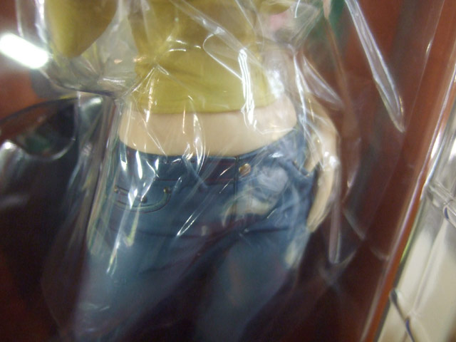 パッケ越しから確認できる、柔らか素材の乳、ローライズなジーンズ前後、付属の右腕パーツなど。