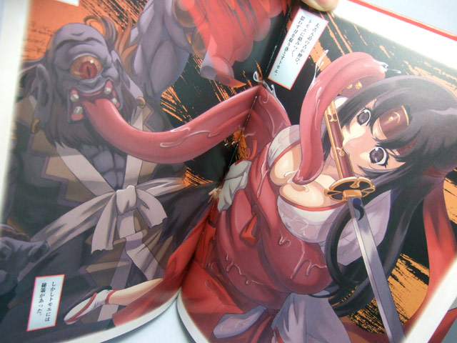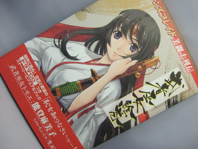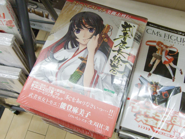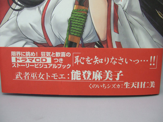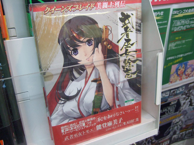 4月28日発売予定のホビージャパン「クイーンズブレイド美闘士列伝 第一弾 武者巫女絵巻」(AA)ですが、25日にはアキバのコトブキヤ両店にて発売されました。これは、以前気絶トモエのPOPもお伝えしたことのある、白濁液がたれているイラストもあったアンソロジーコミックスも発売された、クイーンズブレイドのドラマCDと、カラーイラストブックのセット。イラストには乳縛りもw