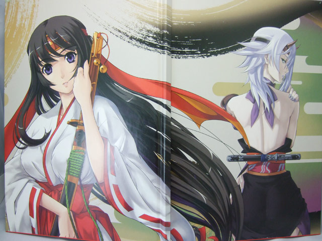 ホビージャパン「クイーンズブレイド美闘士列伝 第一弾 武者巫女絵巻」(AA)の表紙と裏表紙。カバーを外すと、文字などのない表紙イラストが。