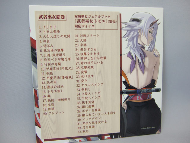 さらにボーナストラックとして対戦型ビジュアルブック『武者巫女トモエ』対応ヴォイス付き!