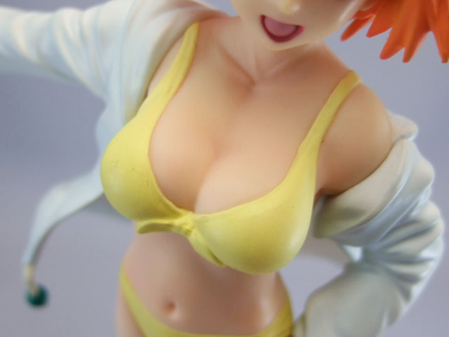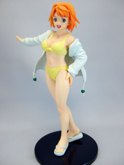 これは、以前サンプルレビューも取らせていただいたことのある、アニメ「舞-HiME」のヒロイン「鴇羽舞衣」を第9話での水着のシーンをモチーフにした水着姿で立体化したもので、乳パーツに柔らか素材が用いられているもの。