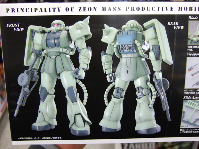 バンダイ「MG MS-06J 量産型ザク Ver.2.0」(AM)のパッケ表と側面の解説など。