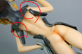 下手すると、首のダボがちぎれちゃうので(というか自分は取れないのでダボ半分残してちぎりましたw)、頭をはずす際は、右の画像を参考にやってみてください。