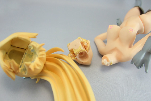 あとは首を外して引っこ抜けばよいのですが、この首がかなり硬く接着されていて、デザインナイフなどでつなぎ目に合わせてカットするイメージで接着をはがしていって、ようやく外れました。