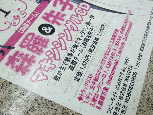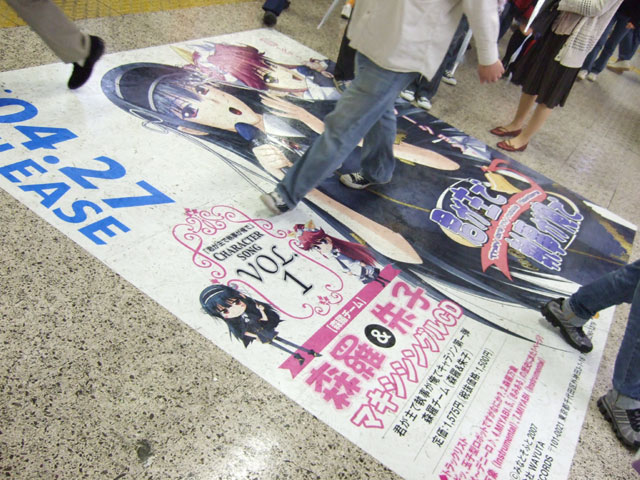 秋葉原駅改札口付近の、巨大床POPが、CD「君が主で執事が俺でキャラソン 第一弾 森羅チーム(森羅&朱子) 」(AA)の告知になっていました。