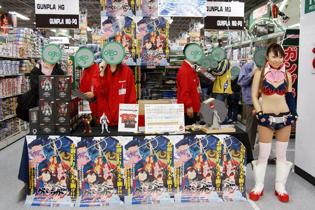 「グレンラガン」(AM)(宮沢模型展示会2007年春での展示/公式の商品説明)と「エンキ」(AM)(公式の商品説明)販売の様子。