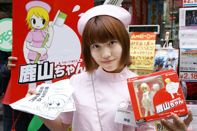 キャラシティ店頭では、やまとより 先日発売された、R.GLATT-CCのオリジナルキャラクター 不良バイト衛生士 鹿山ちゃん「ホワイト」(AM)と「ピンクVer.」(AM)の発売イベントが行われていました。