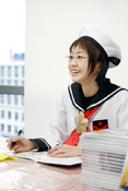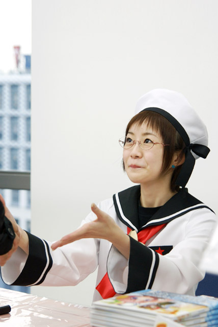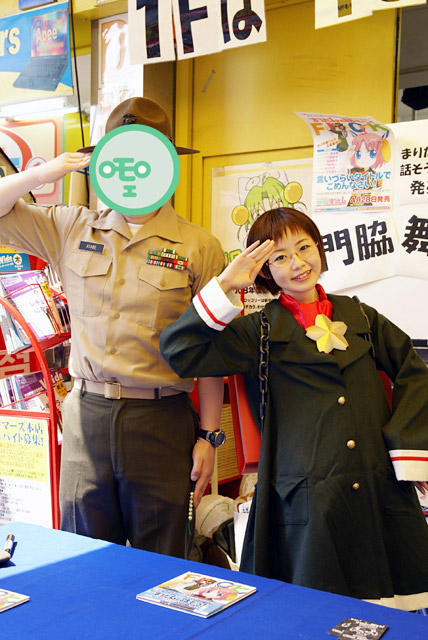 書泉ブックタワーでは「海上じえいたん」のコスプレでした。