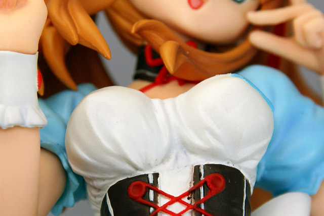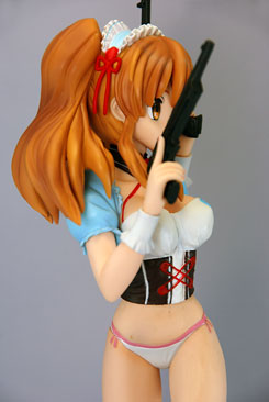 アトリエ彩 「朝比奈みくる キャラアニ限定 ウェイトレスVer(水色)」(CA)のレビューです。なにを隠そう、自分は水色とか青系統が結構好きなので、これもやっぱりこの色に・・・w スカートはデフォでキャストオフ可能となっていて、ピンクのラインがはいった、学生らしい(?)可愛らしいおぱんつでしたw Vゾーンやお尻のシワの造形は学生らしくありませんでしたが・・・w