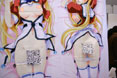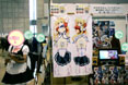 その服を着ているPOPや、お尻をこちらに向けているポーズの抱き枕カバーの展示の様子。