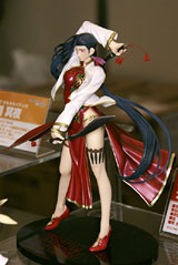 ドリームパーティ東京2007春のグッスマブースにて、マックスファクトリー「ブラックラグーン シェンホア」(AM)のサンプルが展示されてました。これは、ワンフェス2007冬のWONDERFUL HOBBY LIFE FOR YOU!! 4ブースでもサンプル展示のあった「ブラックラグーン」のキャラで、フリーランスの殺し屋「シェンホア」を、コミック4巻(AA)表紙のドレス姿で立体化したもの。