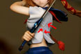 「美城暁(みしろ あかつき)」は、キャラ紹介ページによると「本作品のメインヒロイン。 17歳 身長158cm 日本の片田舎・樺桜(かぐら)市に住む高校生の少女。性格は穏やかで、気だても良く誰からも愛される。〜成績・運動ともに平均より少し上の準・優等生。本人的に目立つつもりは全くないのだが、他人の目にはおしとやかさが逆に華やかに映るのか、必要以上に(特に異性に)注目の的になっていたりする。〜戦闘時には二本の刀「黄泉乃夢」と「蒼乃癒鬼」を操り、普段の穏やかな性格からは考えられない程、冷淡になる。」というキャラ。