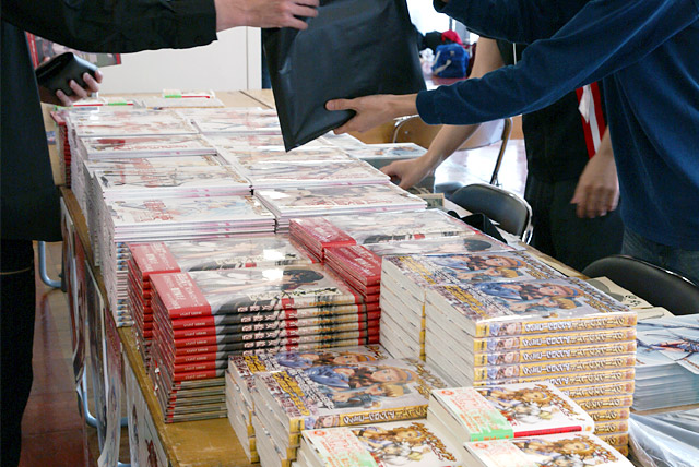 ちなみに当日の売れ筋トップ3は「クイーンズブレイドアンソロジーコミックス」(AA)(発売の様子)、「ソード・オブ・ユニコーン」(AA)(発売の様子)、「美闘士列伝 第一弾 武者巫女絵巻」(AA)(発売の様子)のだったみたいです。