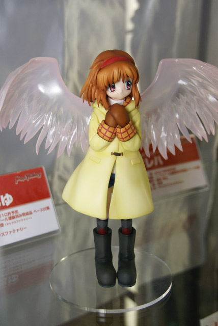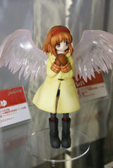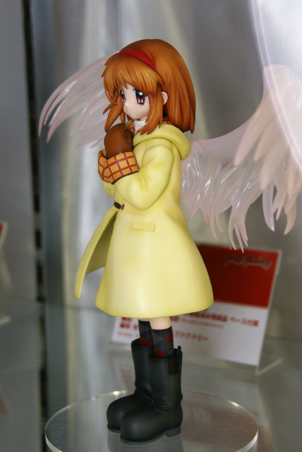 ドリームパーティ東京2007春のグッスマブースにて、マックスファクトリー「Kanon 月宮あゆ」のサンプルが展示されてました。これは、MAXスタッフBLOGで原型が公開されていた、KeyのPCゲーム「Kanon」の「たい焼きが大好き、自分のことを「ボク」と言う。背中にしょった羽付きリュックがトレードマーク」という「月宮あゆ」を背中の羽を大きく広げた姿で立体化したものです。