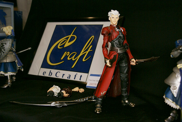 ワールドホビーフェスティバル(WHF)有明16和風堂玩具店ブースでは、eb craft「HYPER FATE COLLECTION Fate/stay night アーチャー」の彩色サンプルが展示されていました。これは、ワンフェス2007冬にて原型サンプル展示もあった、「Fate/stay night」の「アーチャー」を立体化した、セイバー(参考レビュー)に続く、eb craftのアクションフィギュア第2弾。
