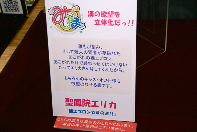 ブースでは元となったイラストも掲示されていて、別途掲示されていたPOPでは、「誰もが望み、そして幾人の猛者が夢破れたあこがれの裸エプロン。あこがれだけで終わらせてはいけない。だってエリカさんはしてくれたから。」とかかれていました。