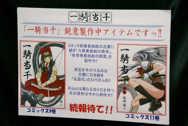 他、掲示されていたPOPによると「一騎当千」の「九巻表紙絵の典偉」、「拾壱巻表紙絵の趙雲」、「エーデルヴァイス」、「アル・アジフ・アナザーブラッド2体セット」なども発売予定とのことでした。