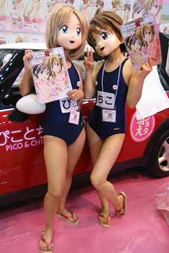 ドリームパーティ東京2007春の企業ブースでは「キャラクターコンテンツ関連の総合展示会」というだけあって、各社様々なゲームキャラクターやかわいいイメージコスチュームを着たコスプレさんたちが数多くいました!そんな企業ブースで見かけた、様々なコスプレさんたちの様子をまとめてお伝えします。もちろん(?)かぶりものな方たちもいらっしゃいましたよ!w