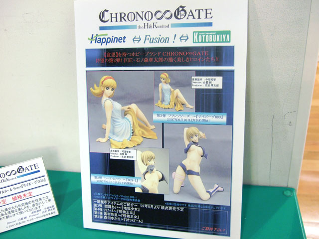 以前、第1弾のサンプル展示をお伝えしたこともある、ハピネットロビンとコトブキヤのコラボブランド「クロノ∞ゲート」の第2弾のBeauty・Iシリーズ「ミレーヌ・ホフマン」と「フランソワーズ・アルヌール」の2種を、コトブキヤラジオ会館で展示準備をしていました。POPによると「巨匠石ノ森章太郎が生み出した永遠の美女たちを究極の女性美で立体化します!!」というもの。