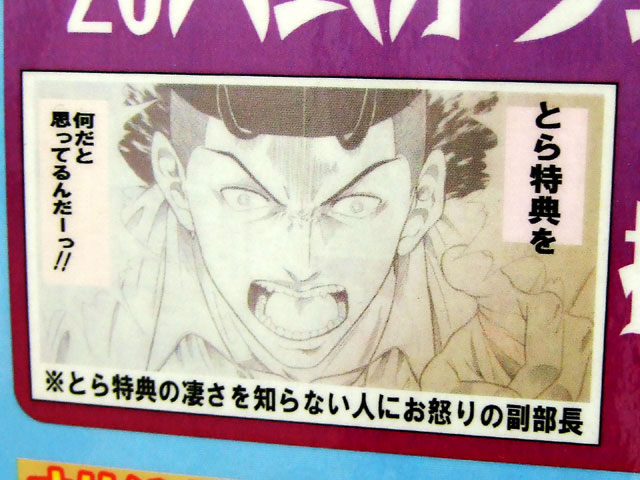 POPではテニプリの大石っぽい方が「※とら特典の凄さを知らない人にお怒りの副部長」として「とら特典を何だと思ってるんだーっ!!」と叫んでいましたw