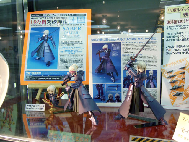 5月11日、海洋堂ホビーロビーを始め、アキバのいくつかの店舗にて海洋堂 「リボルテック Fate/stay night セイバーオルタ」(AM)の予約受付が開始していました。海洋堂ホビーロビーで掲示されていたPOPによると、先日発売された「セイバー」(AM)は販売数10万個突破したみたいです。トレフィでない、単品フィギュアで10万個以上売れたのは、もしかしたら始めてかも!?